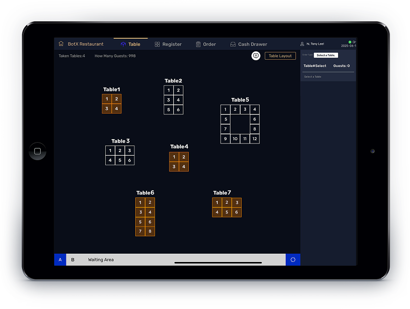 Scale your operations with ease. BotX POS supports full floor plans and section-based layouts, allowing you to add additional iPads as new stations. Whether you're managing the front of house, bar, or patio, each station can be customized for specific functions. You can link up to 24 wireless printers and manage multiple devices from a single centralized system. If your business needs more than 10 iPads or 24+ printers, our support team can assist with advanced solutions tailored to your restaurant's size and workflow.